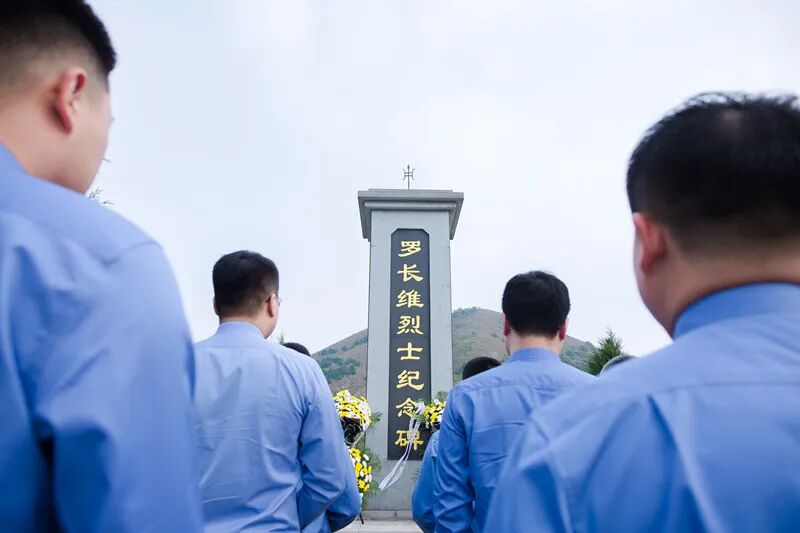 纪念碑前,干警们逐一向罗长维烈士献花,并集体默哀。大家清扫了纪念碑前的杂物,以实际行动表达对先烈的敬仰。