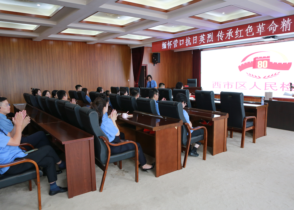 在中国人民抗日战争胜利80周年之际,为缅怀营口抗日英烈,赓续红色血脉,近日,营口市西市区人民检察院开展“缅怀营口抗日英烈 传承红色革命精神”主题党日宣讲活动,邀请辽宁法治报驻营口记者齐岚担任主讲人,带领干警重温抗日烽火岁月,感悟英烈精神。