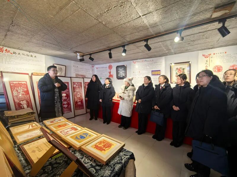 在讲解过程中,赵老师结合工坊内的代表性作品,生动讲述了剪纸技艺从“家族手艺”到“产业赋能”的转变。如今,非遗工坊不仅致力于技艺传承,更通过开展剪纸培训、开发文创产品、线上线下销售等方式,让古老的剪纸技艺成为助力乡村振兴的“金钥匙”,大家认真聆听、不时点头,深深被非遗传承人的坚守与担当所打动,也对“非遗赋能乡村振兴”有了更直观、更深刻的理解。