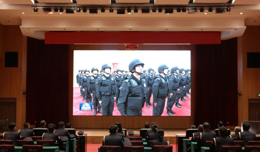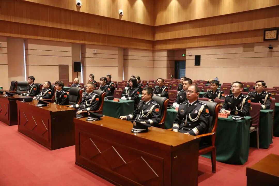 两级院全体司法警察重温习近平总书记在中国人民警察警旗授旗仪式上的重要训词精神,认真学习习近平总书记对政法工作的重要指示。