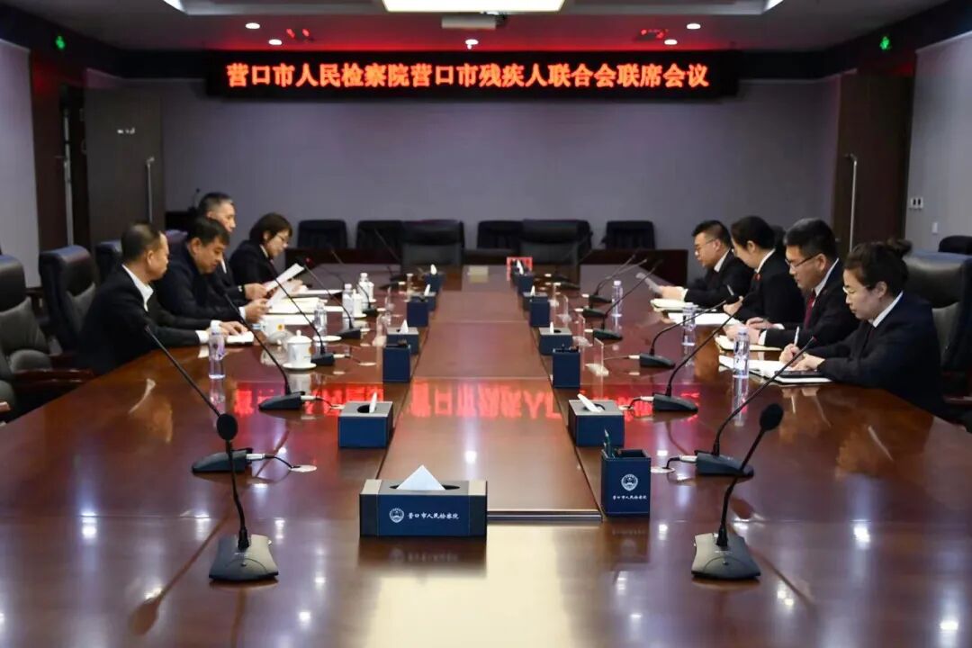 为深入贯彻落实最高检“检护民生”专项行动部署,精准规范开展无障碍环境建设公益诉讼检察工作,共同推动构建多元化保障残疾人群体权益的工作格局,近日,营口市检察院与营口市残疾人联合会召开无障碍环境建设工作联席会议。营口市检察院党组成员、副检察长陈永全及营口市残疾人联合会党组书记、理事长于洪波、副理事长邹宏川等人出席会议。