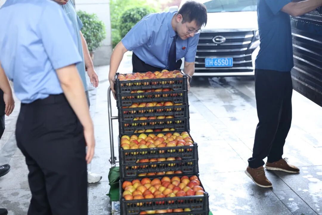 8月20日,检察院部分干警与大槽峪村村民将新鲜采摘的近两万斤李子第一时间送到运输点,所有的李子装卸完毕已经晚上十一点多了,可是看到果农们欣喜的笑容,我们的干警也纷纷满足地笑了。