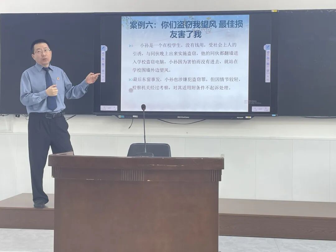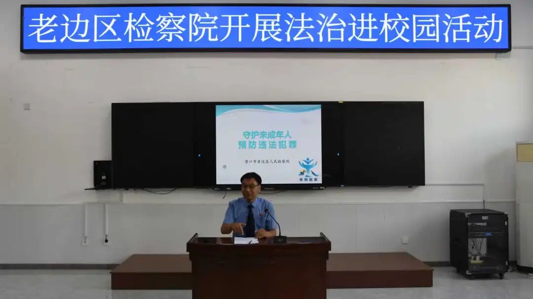老边区检察院党组成员、副检察长聂楠以“守护未成年人健康成长”为主题,从《中华人民共和国预防未成年人犯罪法》《中华人民共和国未成年人保护法》等法律着手,向同学们介绍了校园欺凌的主要形式、起因、处理方式、现实危害和防范方式,系统性地梳理了实践中未成年人常发的犯罪类型及刑罚后果,引导同学们在日常交往中树立正确的友谊观,时刻心存底线,常怀敬畏,自觉培养规则意识和契约精神。