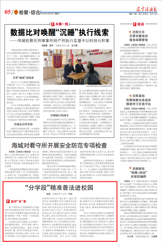 近日,辽宁法治报刊登发布“西市区人民检察院:‘分学段’精准普法进校园”一文,内容如下: