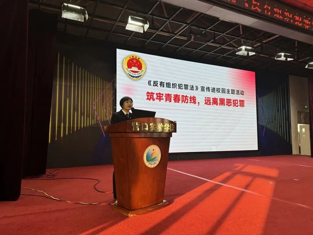 为深入贯彻落实全国扫黑除恶斗争领导小组专题会议精神,切实防范未成年人涉黑涉恶违法犯罪,近日,老边区人民检察院干警走进辖区两所中学,以通俗易懂的语言为同学们解读《反有组织犯罪法》,详细讲解立法背景、核心内容及重要意义,引导学生增强辨别能力、提升自护本领,在校园内播撒法治种子,为青春成长筑牢安全防线。