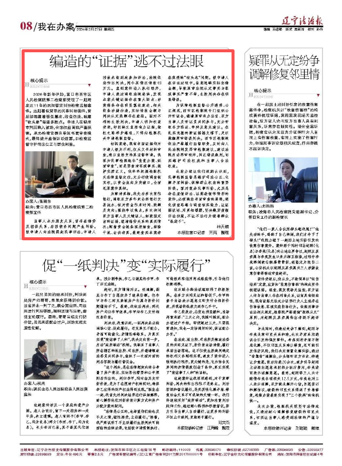 2026年新年伊始,营口市西市区人民检察院第二检察部受理了一起跨度近11年的民间借贷纠纷检察监督案件。这起看似简单的民事纠纷案件,背后却隐藏着借条篡改、收条伪造、暗藏“砍头息”等诸多疑点。申请人在缺席审判后陷入被动,合法权益面临严重损害。承办检察官摒弃单纯书面审查模式,最终拨开虚假诉讼迷雾,以检察监督守护司法公正与群众利益。 办案人:张晓东 职务:营口市西市区人民检察院第二检察部主任 当事人本为朋友关系,曾存在借贷及担保关系,后因债务问题产生纠纷。被申请人向法院提起民事诉讼,申请人因故未能到庭参加诉讼,法院依法作出判决,判令其偿还借款69万元。直到案件进入执行程序,申请人通过调取法院卷宗,发现本案关键证据存在重大疑点:涉案借条存在明显篡改痕迹,相关收条涉嫌伪造,实际借款金额与判决认定数额存在差距。面对不利的生效判决,申请人明知权益受损,却因缺乏直接有力证据,维权之路举步维艰,只得向检察机关申请检察监督。 初阅案卷,现有书面证据均对申请人极为不利,仅从文书材料审查,难以直接支持其监督申请。我深知民事检察绝非“坐堂办案、纸面审查”,而是要查清客观事实、维护实质正义。我牢牢把握检察机关法律监督定位,充分行使调查核实权,以资金流向为突破口,全面还原案件真相。 为廓清真相,我先后多次前往银行,调取双方多年来全部银行交易流水,核对资金往来时间、数额及走向;围绕争议焦点,多次询问双方当事人及关键证人,细致固定言辞证据,理清借贷关系的真实情况;顺着资金链条深挖细查,排除干扰、去伪存真,最终查实本案存在典型的“砍头息”问题。被申请人在诉讼过程中,故意隐瞒实际出借金额,导致原审法院认定事实与客观事实严重不符,生效判决存在明显错误。 为保障检察监督公开透明、公正规范,西市区检察院专门组织公开听证会,邀请原审承办法官、双方当事人及听证员共同参与,充分听取各方陈述、申辩及意见建议。在扎实完整的新证据链支撑下,足以推翻原审错误判决。西市区检察院依法严格履行监督职责,及时向人民法院制发再审检察建议,建议法院启动再审程序,纠正错误裁判,切实维护司法权威和当事人合法权益。 此案办理让我们深刻认识到,民事检察监督是维护司法公正、化解矛盾纠纷、保障群众权益的重要防线。面对复杂民事纠纷,尤其是存在虚假诉讼、证据造假等情形的案件,必须跳出书面审查的局限,强化侦查思维与调查核实能力,让证据说话、用真相撑腰,坚决戳穿虚假诉讼伪装,不让不法行为侵害群众“钱袋子”。
