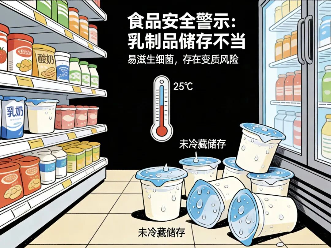 检察官说法:食品储存条件是保障食品保质期、防止食品变质的关键,尤其是酸奶、鲜奶等乳制品,对储存温度有严格要求,未按规定冷藏易导致菌群超标、食品变质,消费者食用后可能引发腹痛、腹泻等肠胃疾病。食品经营者应当严格按照食品标签标注的储存条件进行经营,履行食品安全保障义务。