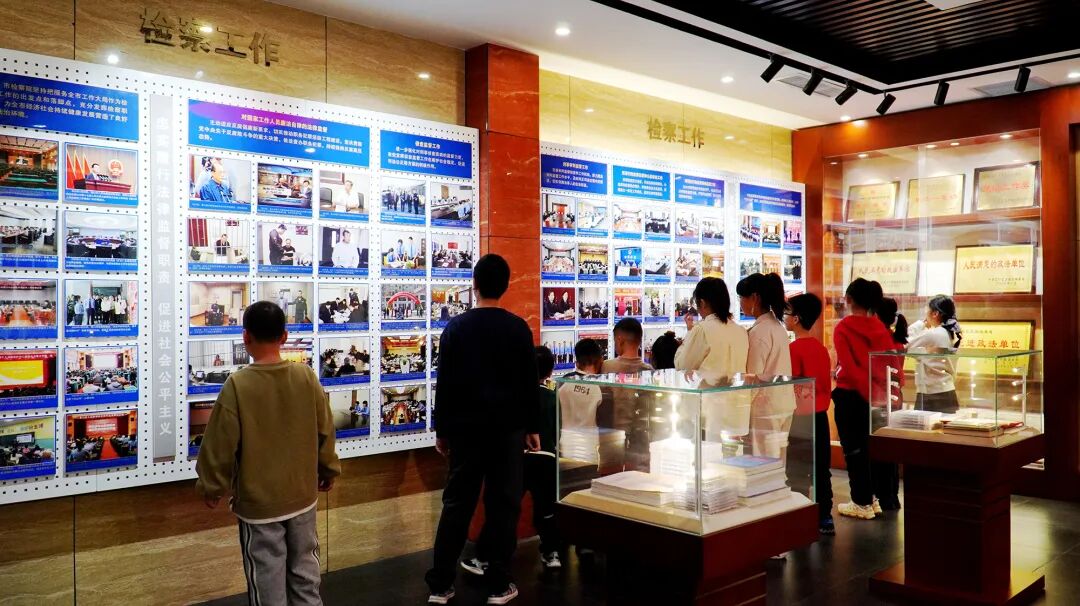 依托检察机关独特资源,托管班组织开展“检察探秘之旅”,让孩子们近距离感受父母工作的意义与荣光。在干警志愿者的带领下,孩子们首先走进院史荣誉室,通过老照片、功勋奖章、典型案例展板等实物资料,聆听营口检察的发展历程与干警们的奋斗故事,直观感受父母作为检察人的责任与担当。随后,孩子们来到未成年人法治教育实践基地,了解未成年人保护的“六大保护”体系,学习自我保护技巧。
