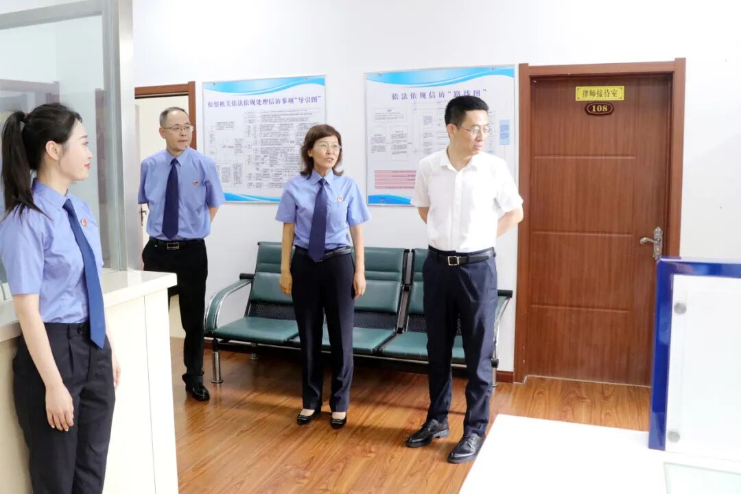 7月31日,营口市检察院党组书记、检察长潘晓意一行到站前区检察院调研指导工作,实地查看办公场所、硬件设施和日常工作情况,与班子成员、检委会专职委员、各部门中层正副职同志进行座谈交流。