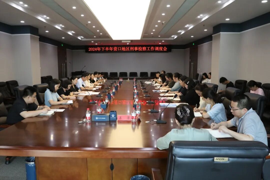 2024年8月16日,营口市检察院召开2024年下半年营口地区刑事检察工作调度会。市院第一检察部全体人员、各基层院分管刑事副检察长、第一检察部主任、负责考评人员参加了此次会议。